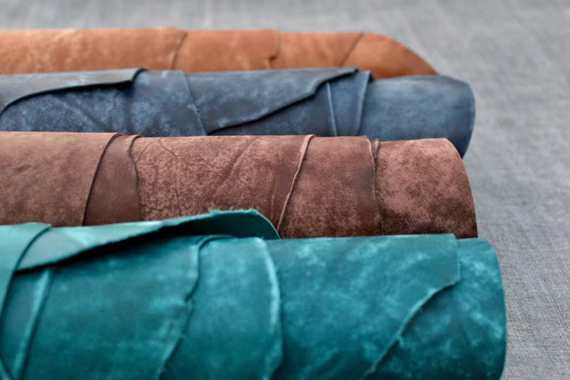 Suede: Top & Full Grain are split from the top of the hide leaving fuzzy soft finish on both sides of a split commonly known as "suede". Contains no grain at all.